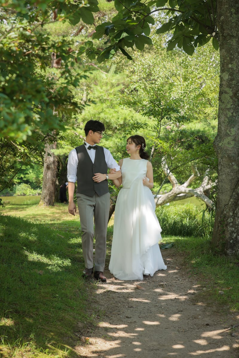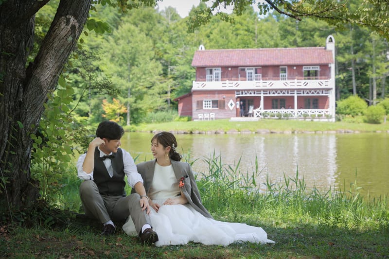 とても可愛いご新婦様と優しいご新郎様でした。自然を好きなお二人は前撮りフォトをタリアセンで撮影希望しました。