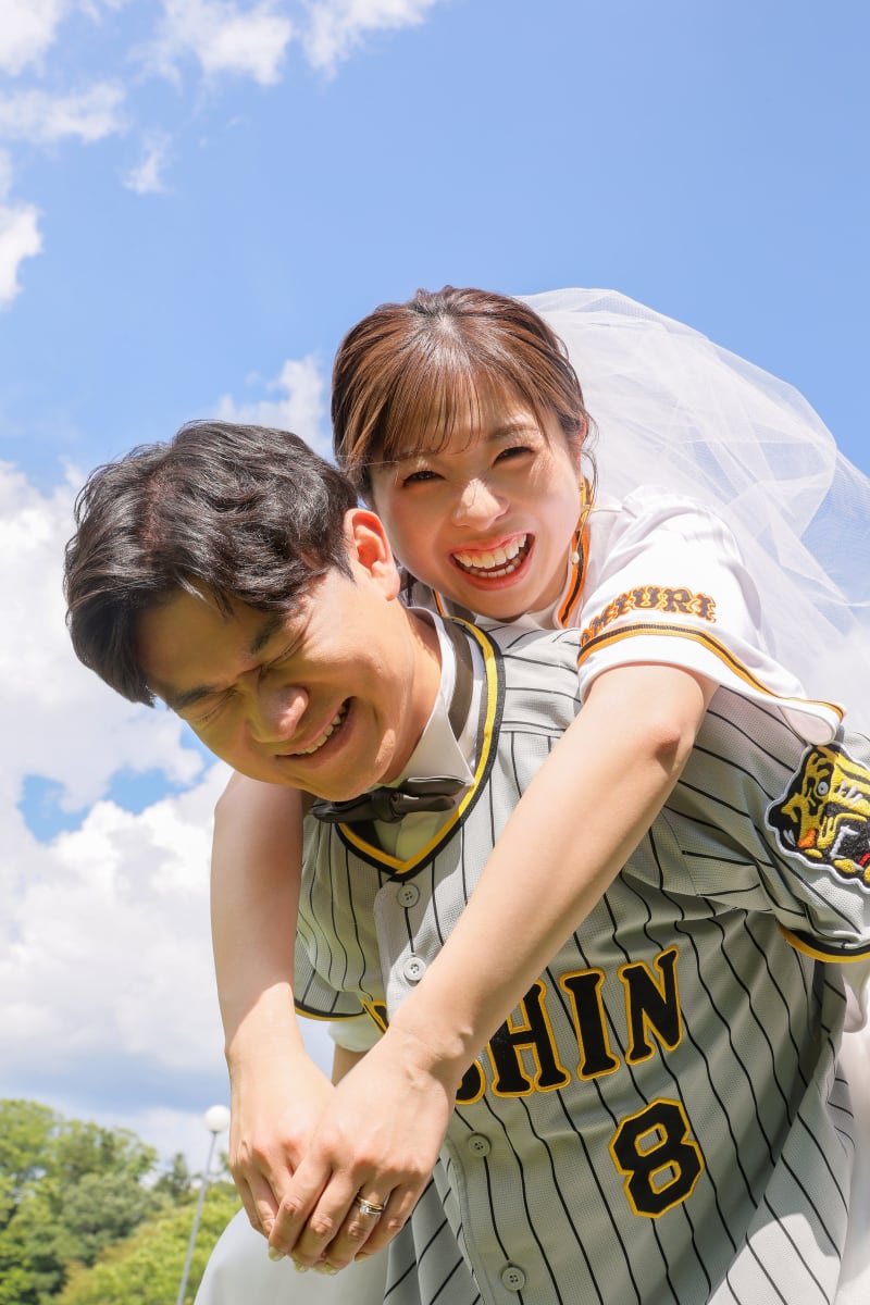 野球好きのお二人でしたので、野球っぽいお写真も撮影いたしました。楽しい撮影でした。末永くお幸せに☺︎