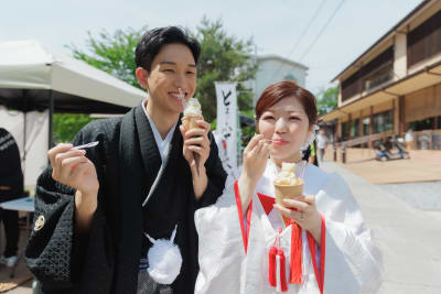 あまりの暑さにあっという間にアイスが溶けてあっと驚くご新郎様。