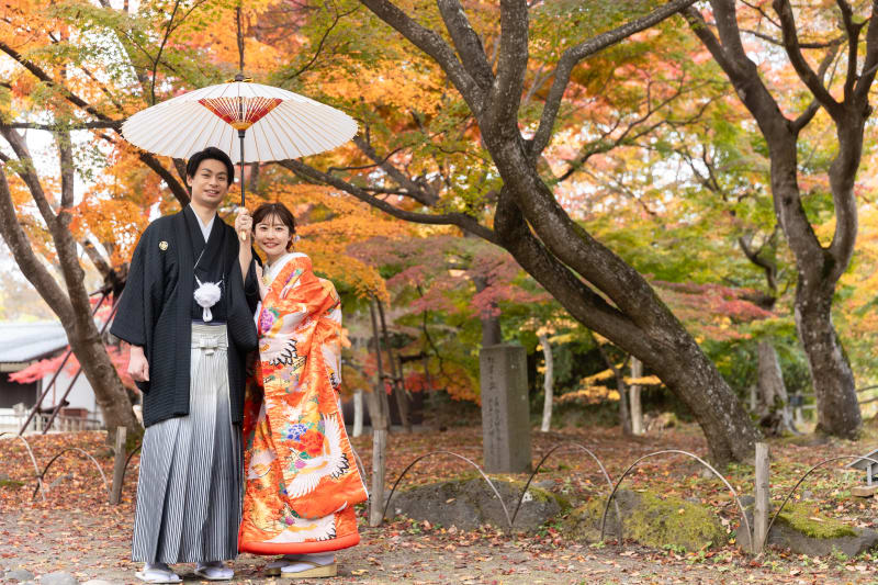 和装ならではの和傘を使用しての撮影も素敵ですね。