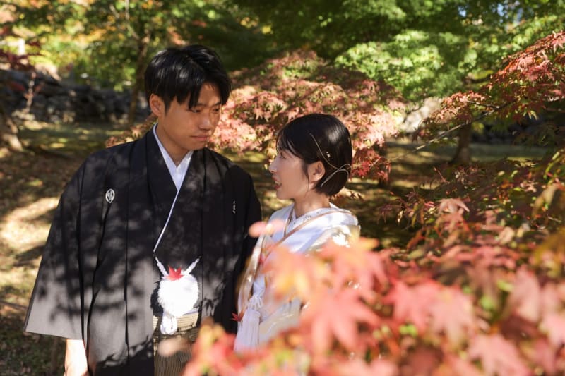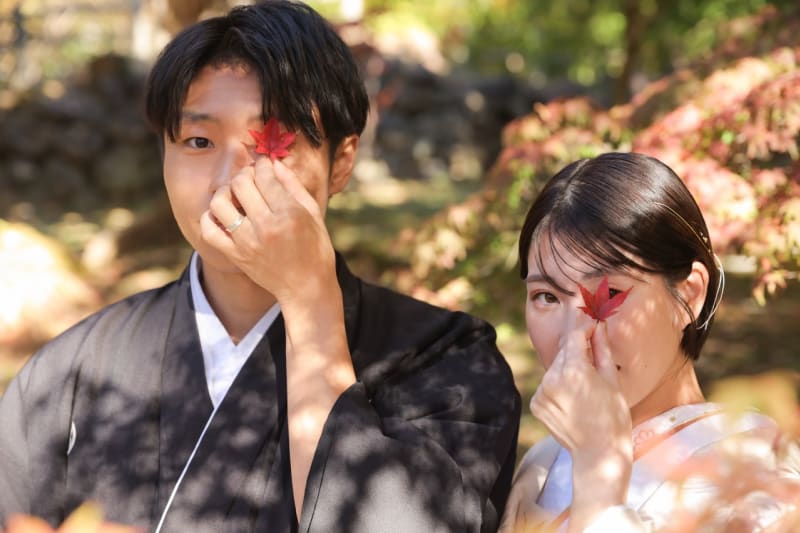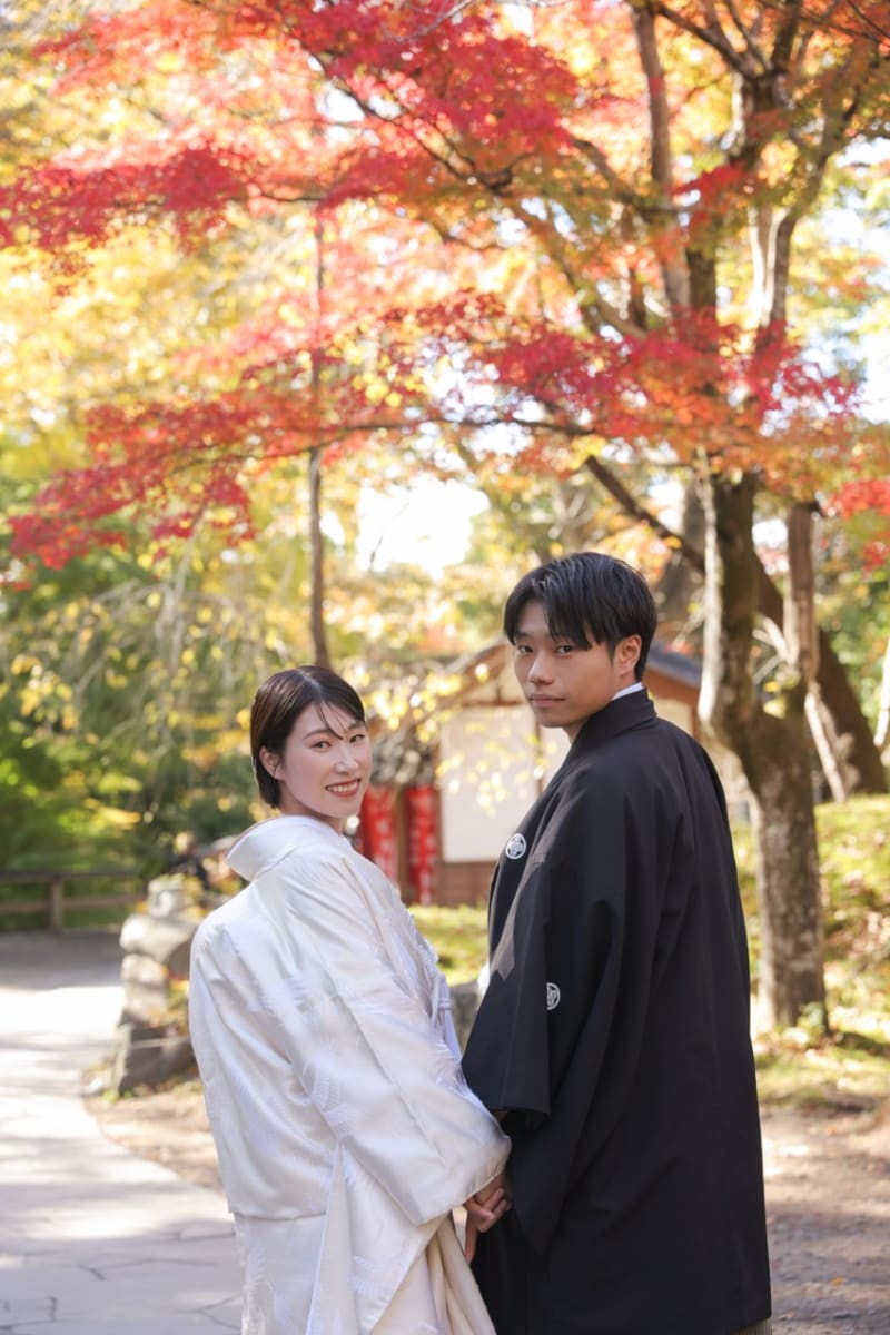 お顔に近いところに色づいた葉っぱがあったので、このような形で紅葉に囲まれたようなお写真も撮影させていただきました!