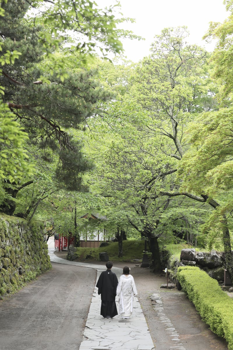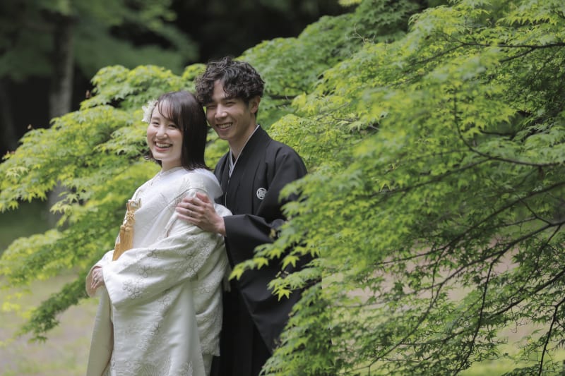 和装は雨でしっとりとした緑が逆に雰囲気が出ていてとても素敵でした◎