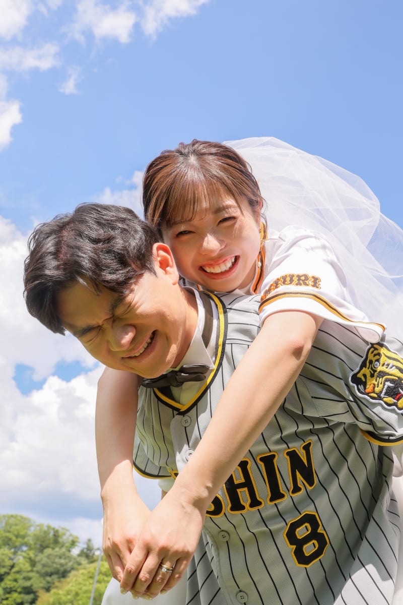 新婦さんのバックハグの笑顔が本当に楽しそうで、見ているだけで幸せな気持ちに💛