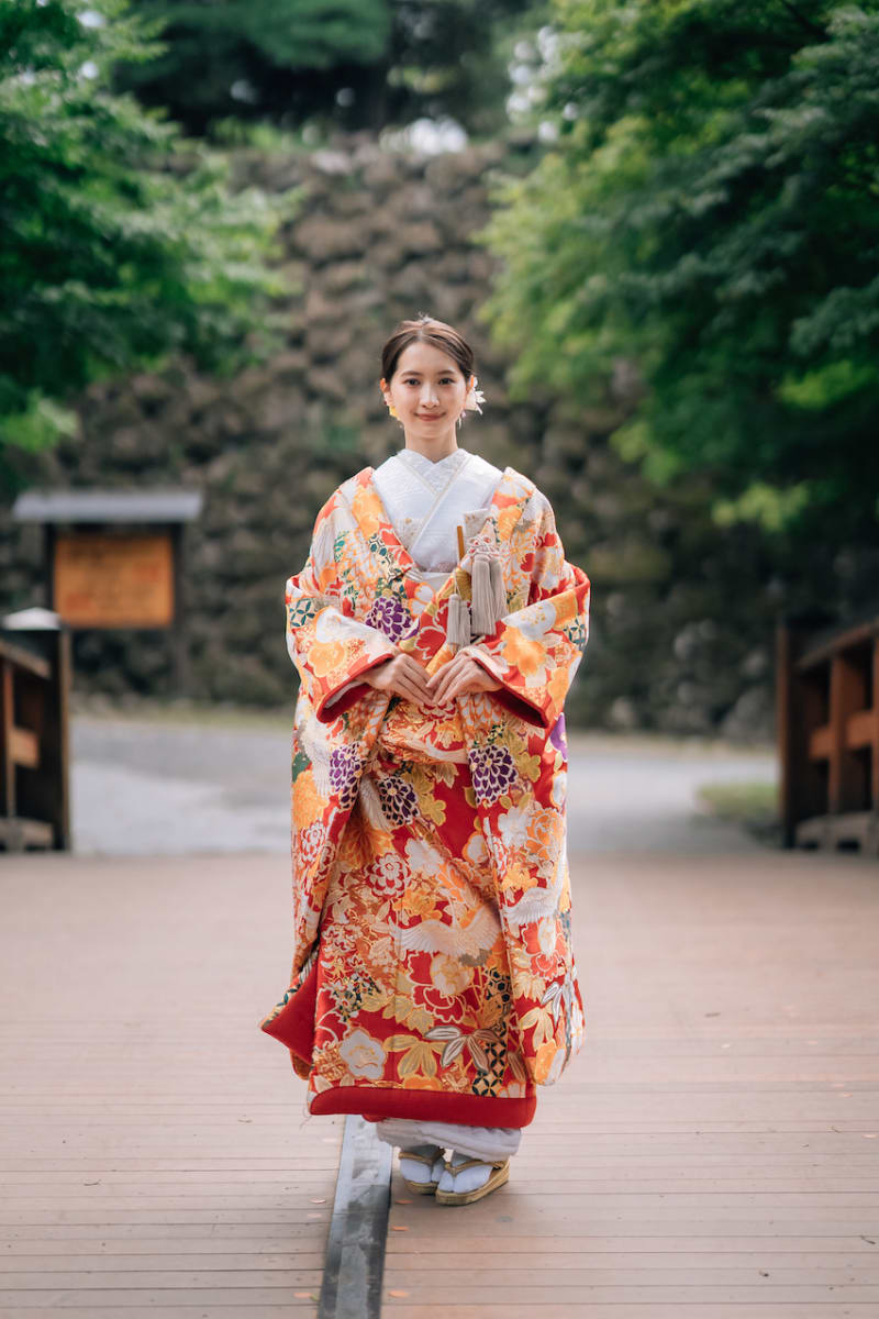 どこから見ても柄が華やかに入っている赤の打掛です!