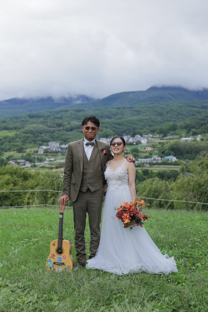 新郎さんには特別にギターを披露していただき、その音色に合わせて撮影も進みます。