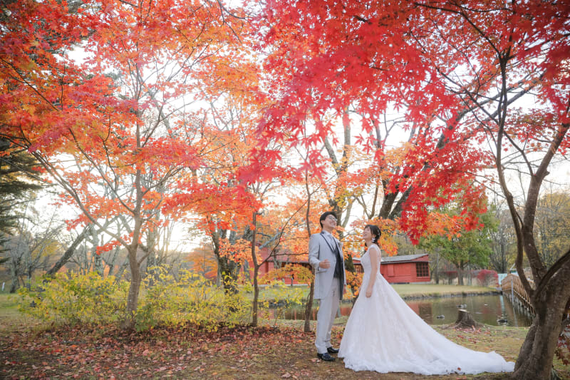 いま、まさに見頃を迎えている紅葉との撮影が叶います