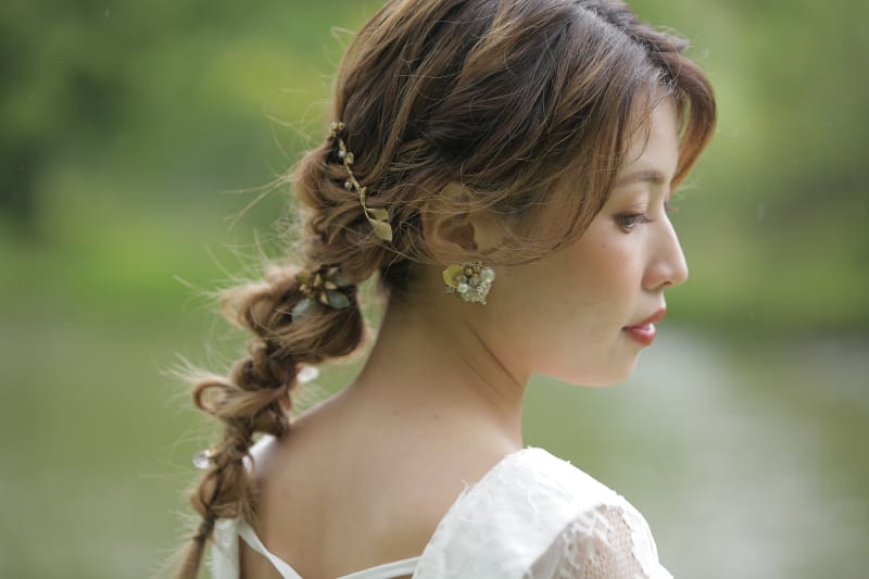 髪飾りにはゴールド系のものと天然石の小さい飾りをつけました^^