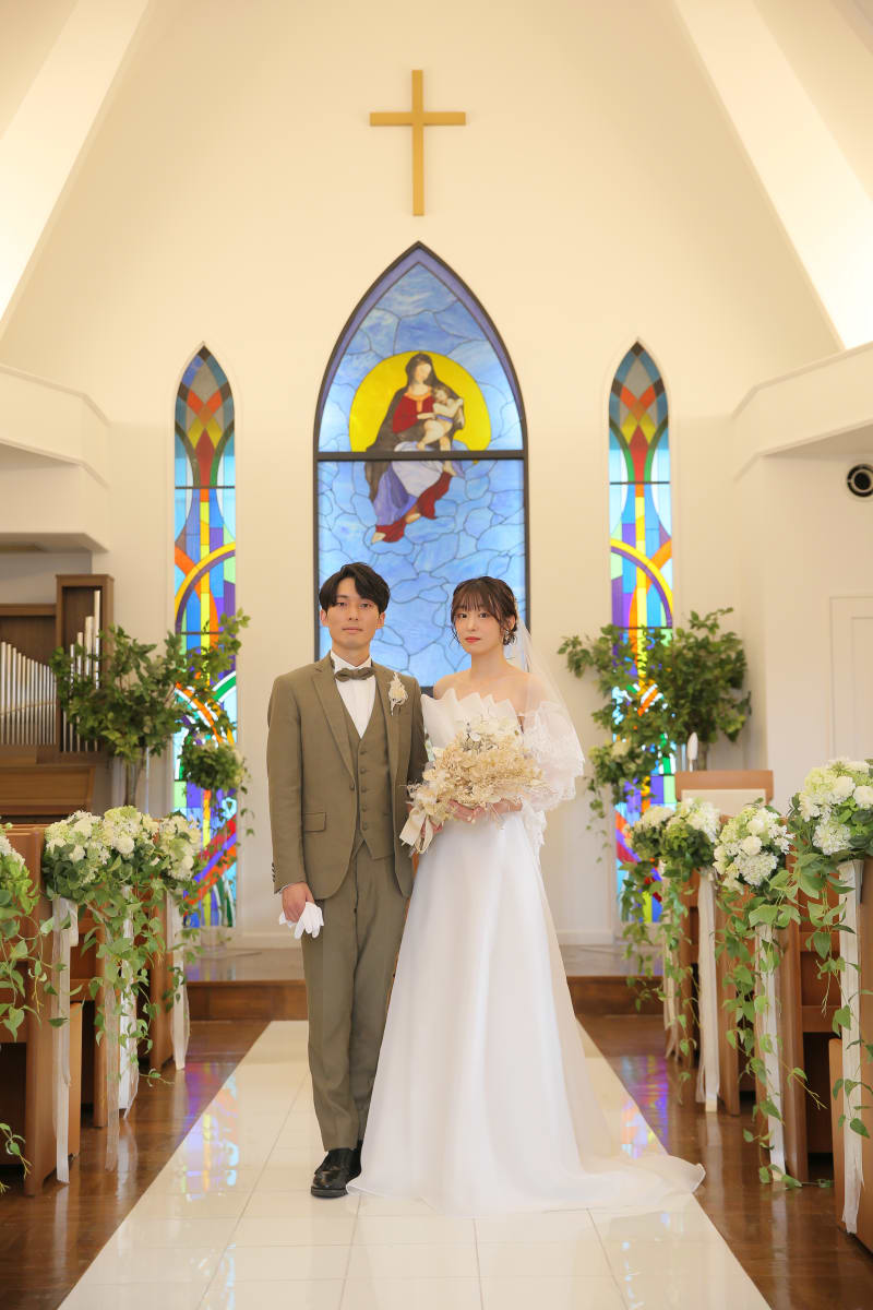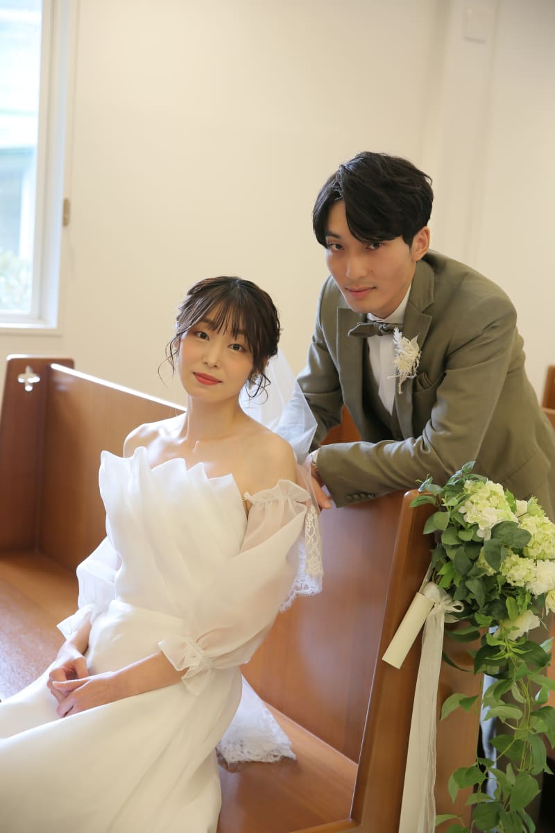 ノースリーブデザインのドレスとカーキのタキシード^^
