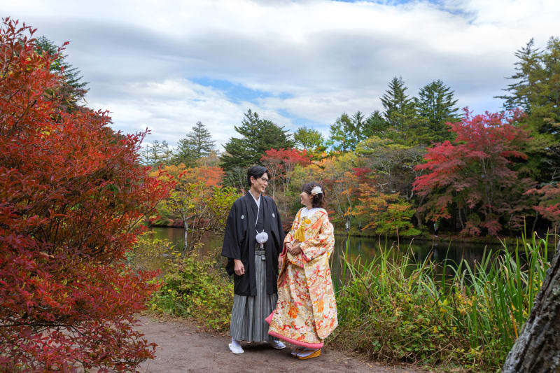 和装で2箇所、軽井沢での撮影を楽しむプラン。