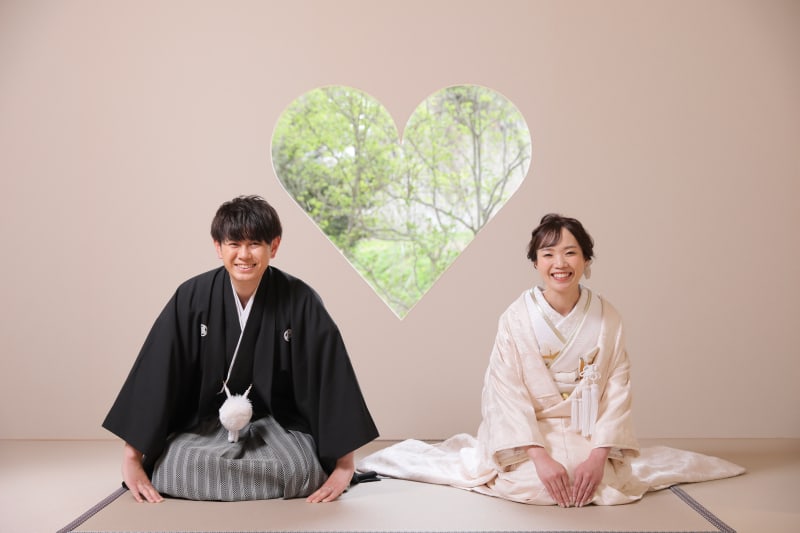 お外では撮影できない正座撮影も店舗内にある猪目窓(ハートの窓)の前で撮れちゃいます♫