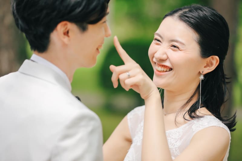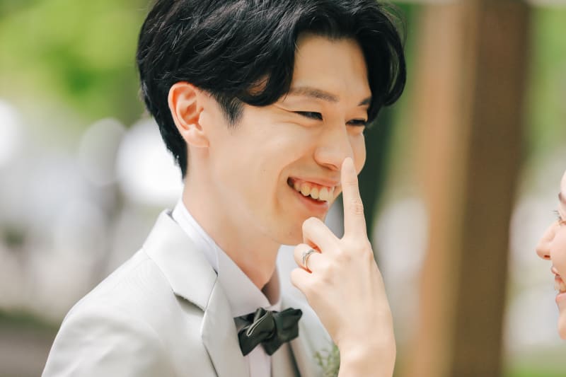 ご新婦様に「ご新郎様のお鼻をつんつんしてみてください」とお願いしたら、