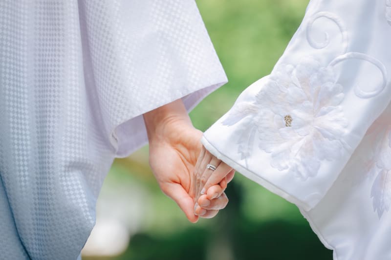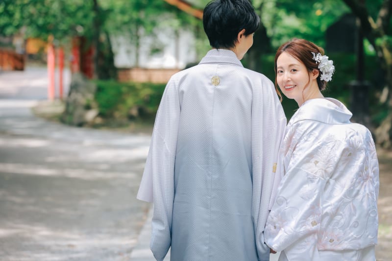 淡い青と薄紫のカラーが、お二人のお着物に似合ってますね♡