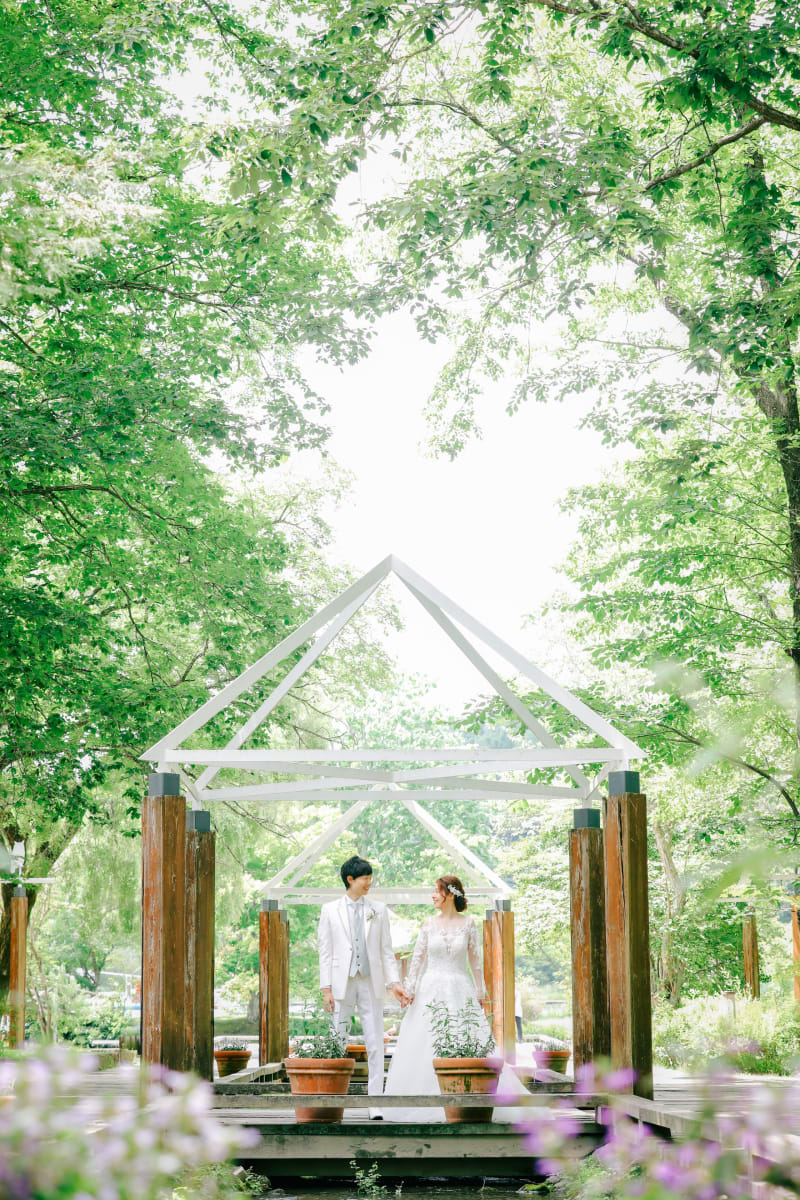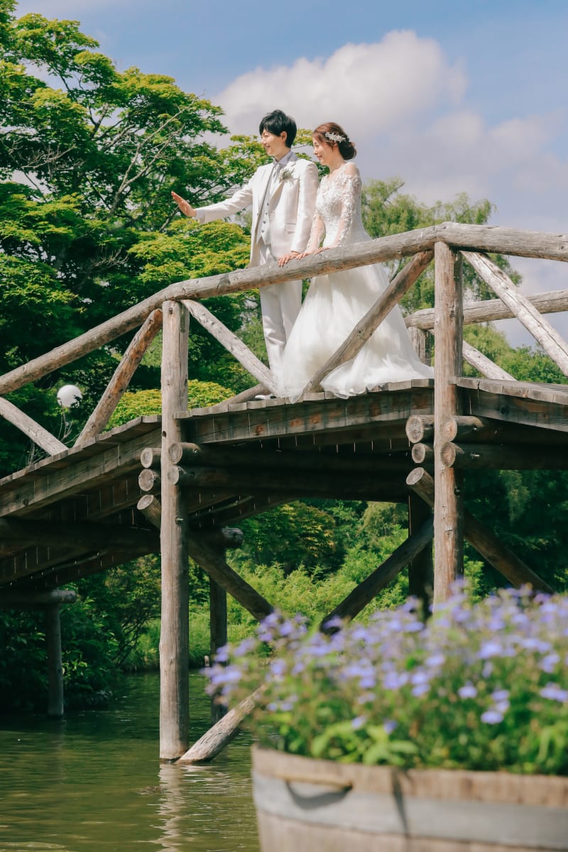 木の橋の上から見るお二人のお姿も、とても絵になりますね!