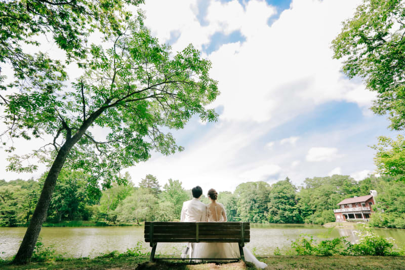 湖を背景に、美しい新緑と大自然に囲まれて開放的な気持ちで撮影が出来ます♪