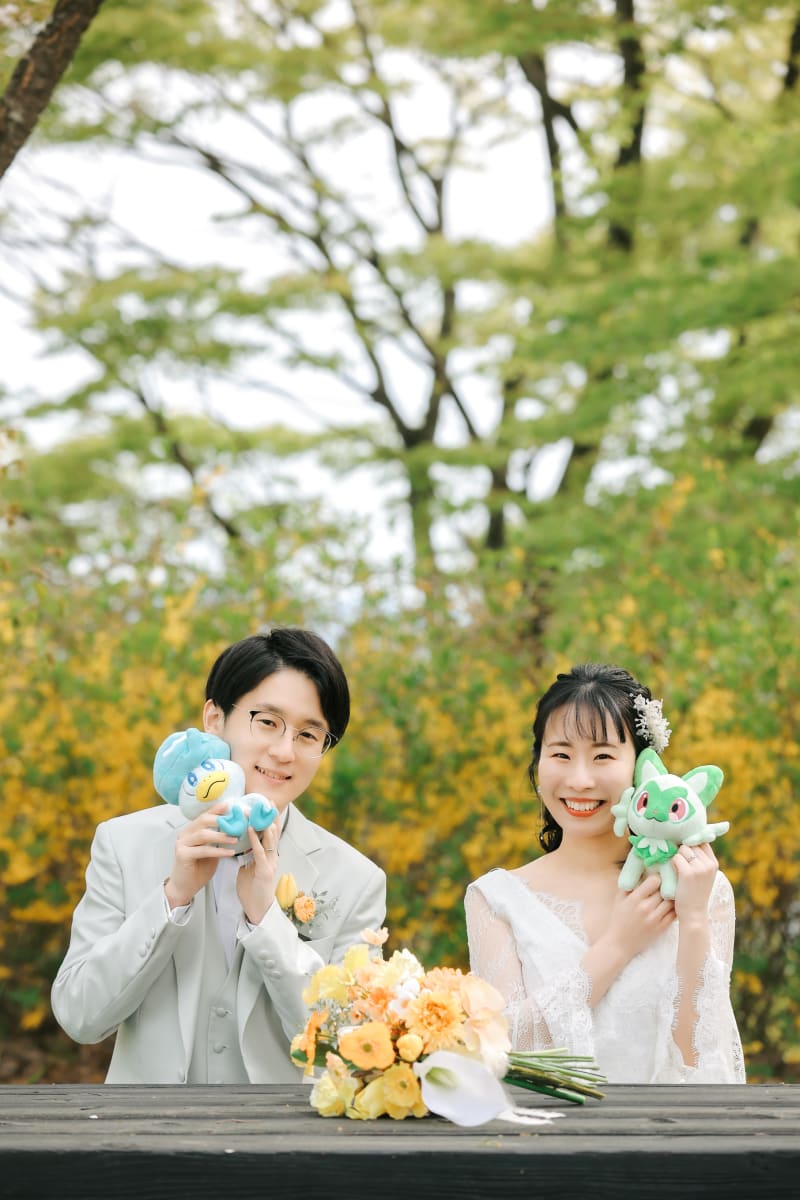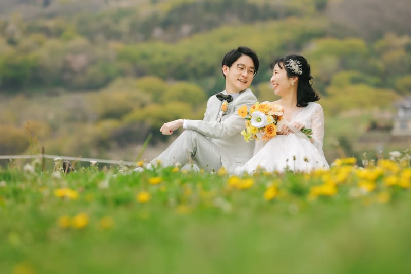 この日は黄色の可愛らしいたんぽぽが沢山咲いてました♫お二人の雰囲気と笑顔と相まって、とても可愛いですね♡