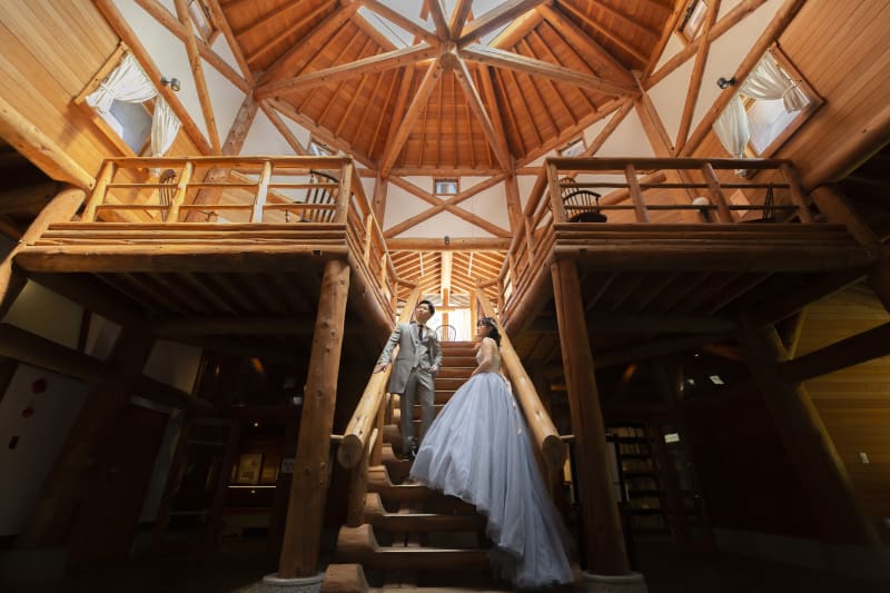 建物の中はこのように階段があり、トレーンの長いドレスがよく映えます!