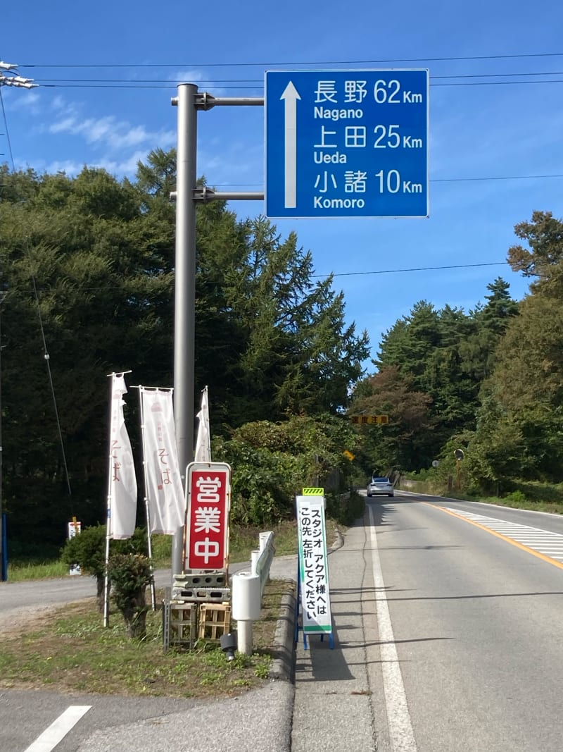 ※軽井沢・群馬方面から来た場合 青い道路案内が目印です。左折してください(地粉や様の角)