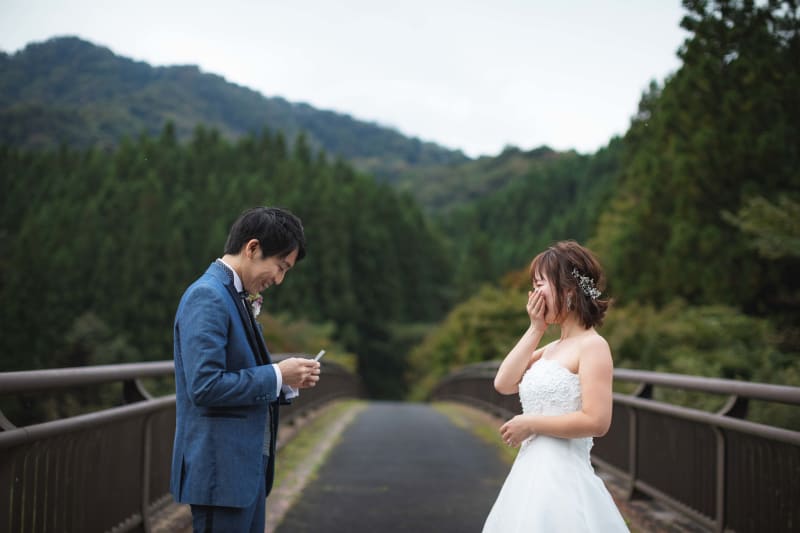 お手紙のサプライズについついご新婦様が涙を。。本当に素敵なシーンですね。
