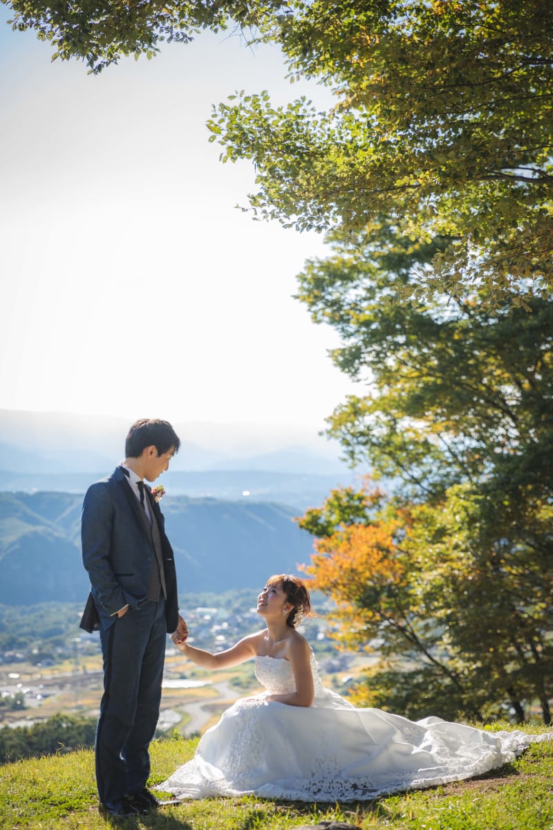軽井沢ならではの壮大な景色のもと、ご新郎様のエスコートでより素敵な仕上がりになります。