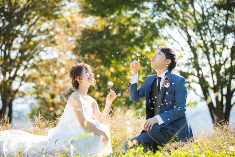 タンポポを飛ばしているお二人の姿がとてもかわいいですね!