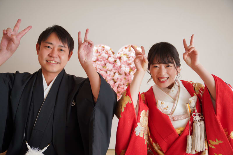 ご新婦様が好きなアイドルのポーズだそうで、新郎様も少し恥ずかしがりながらも一緒にやってくださいました!