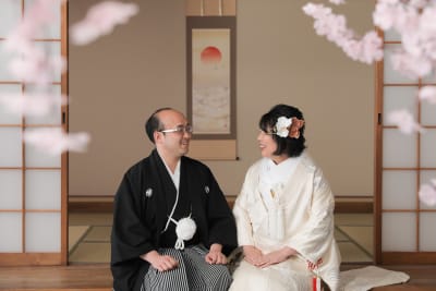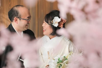 撮影の際に桜を入れ込んでお撮りいたしました。