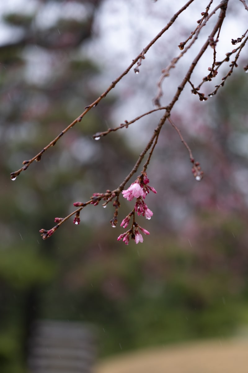 撮影の日は、まだ枝垂れ桜の蕾が少し緩んで来た頃。