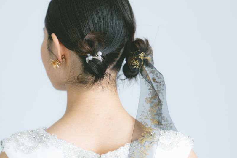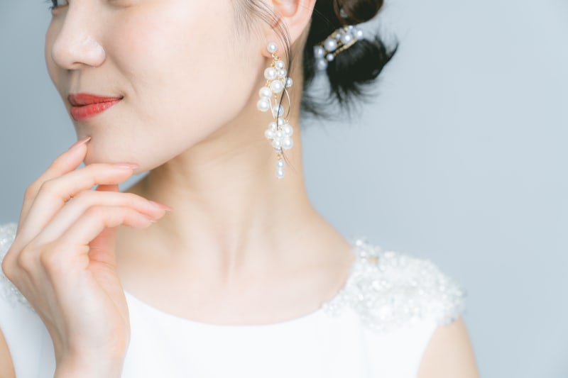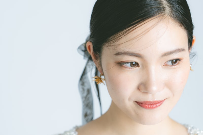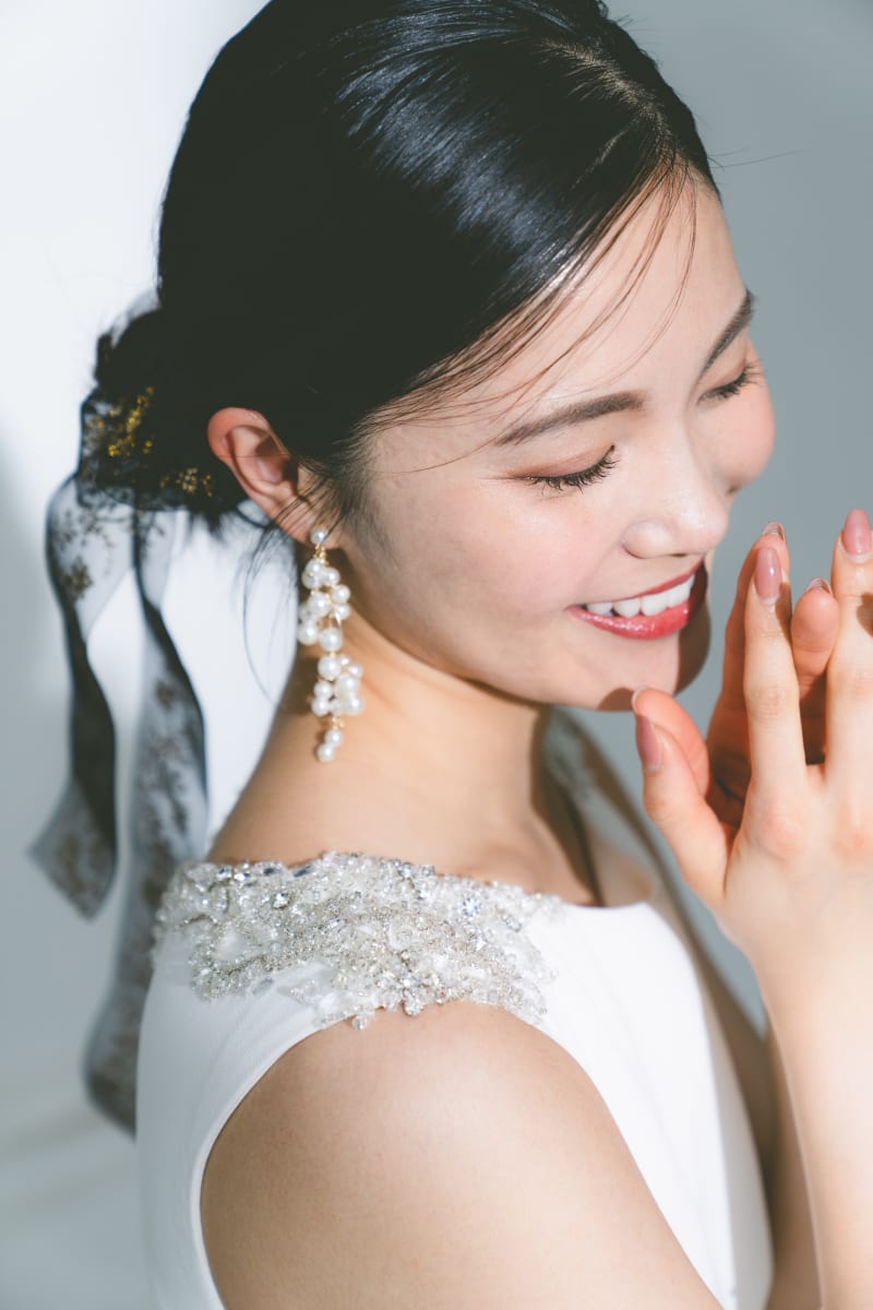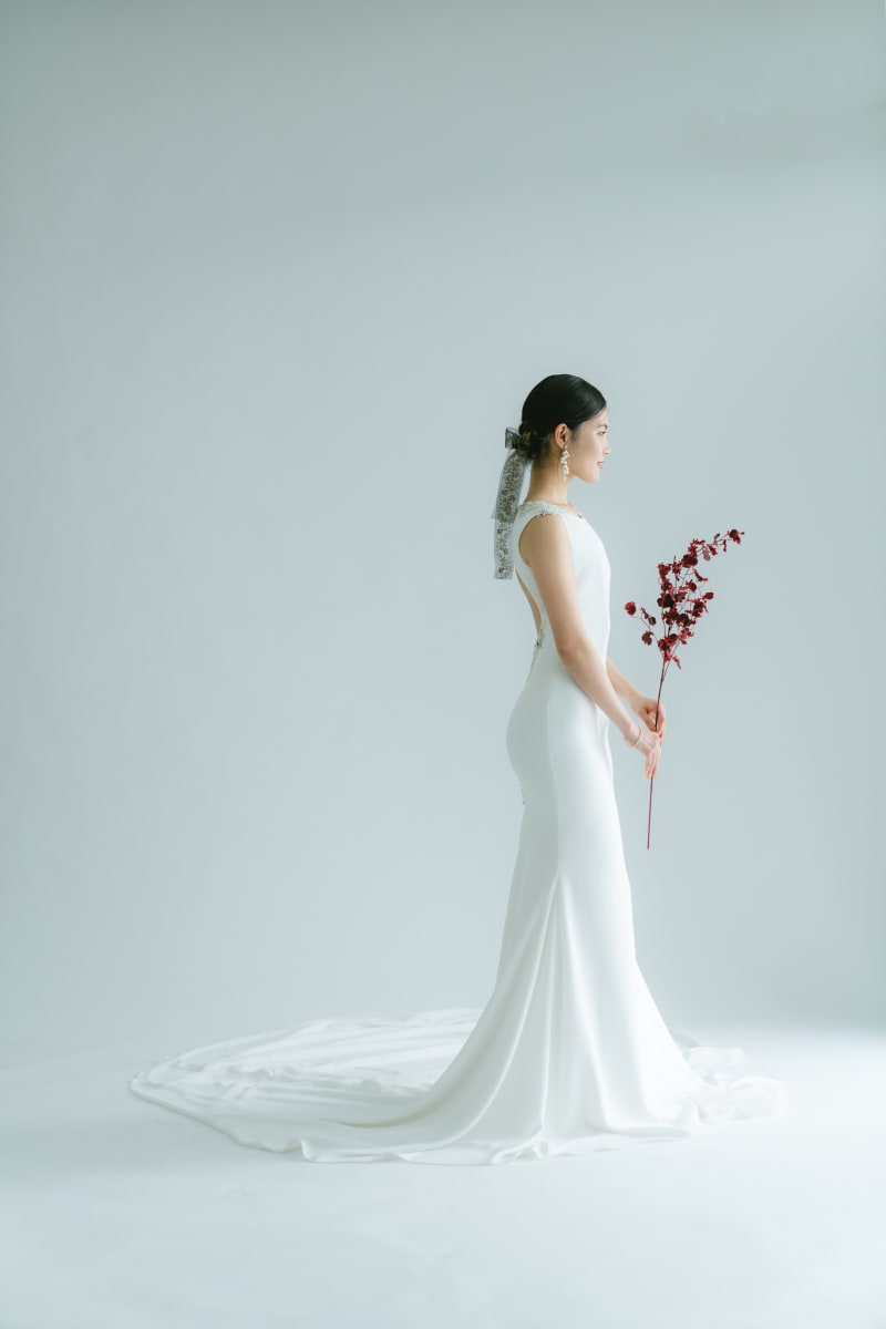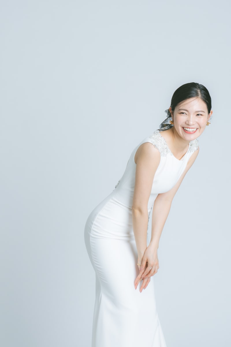 着用しているドレスはスペイン発のブランド PRONOVIAS