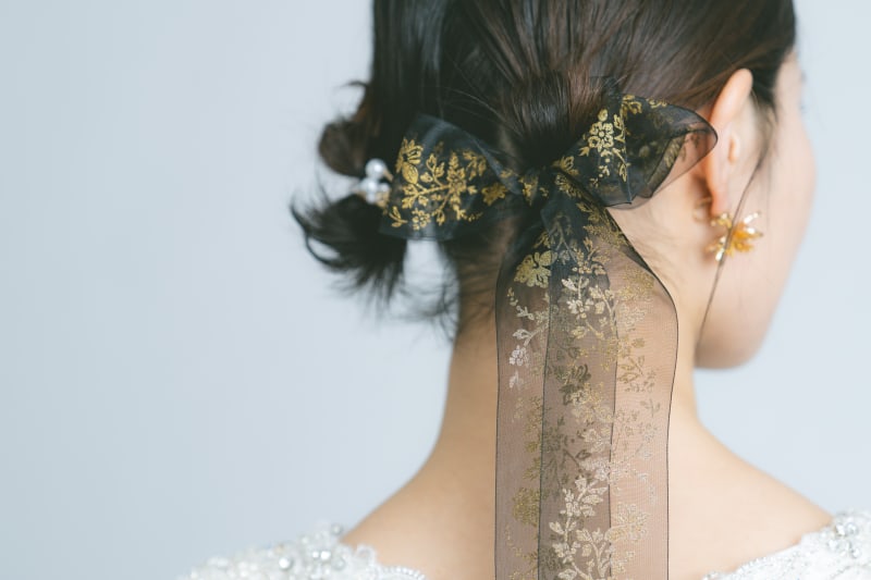 後ろ姿は背中が大胆に開いたデザインで、花嫁様を煌びやかに見せます。