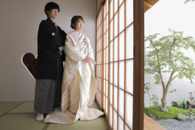 屋内庭園では、紅葉や桜などの造花を用いた撮影やかわいい猪目窓、庭園など幅広い撮影をすることが出来ます!