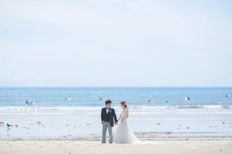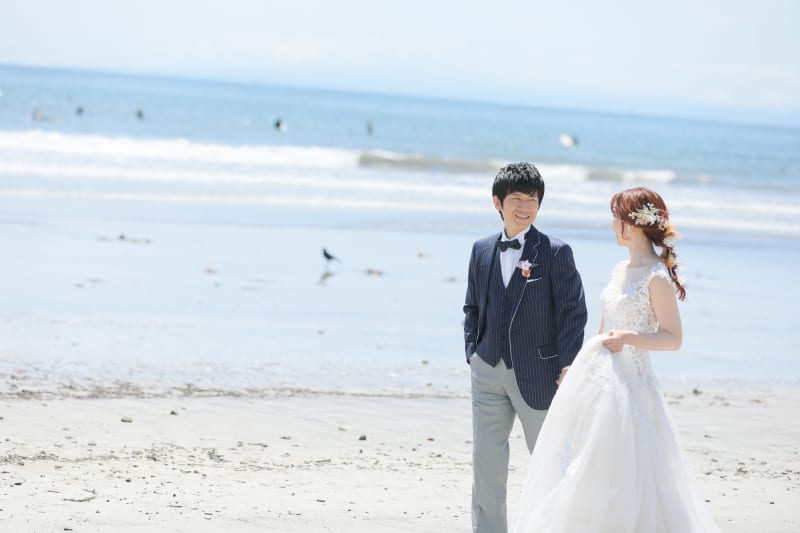 この日は可愛いかもめもたくさんいて、まるでお二人を祝福しているかのようでした! 湘南なら、あまり遠すぎず、人が少ない状態での撮影が叶います◎