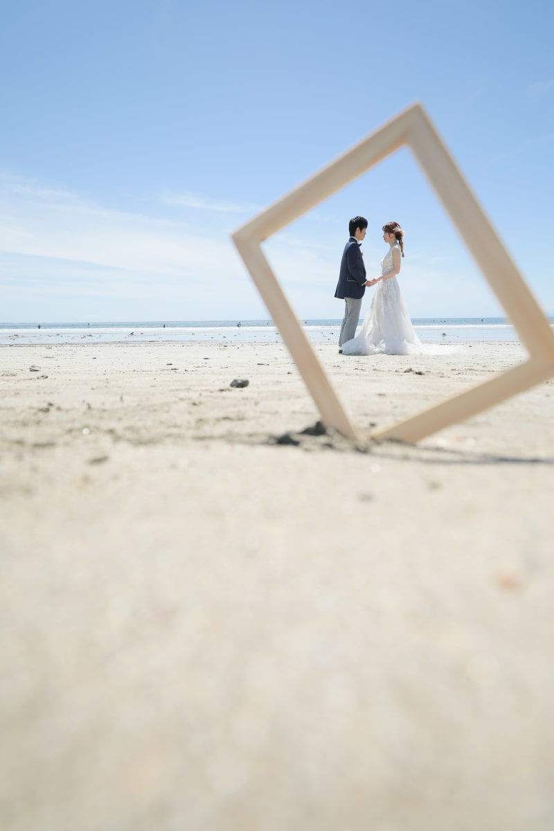 こちらは私のお気に入りのカットです〜! フォトフレームの外枠を使って撮影しました! まるでお二人が額縁の中に入ってしまったかのような美しさがあって素敵ですよね♡