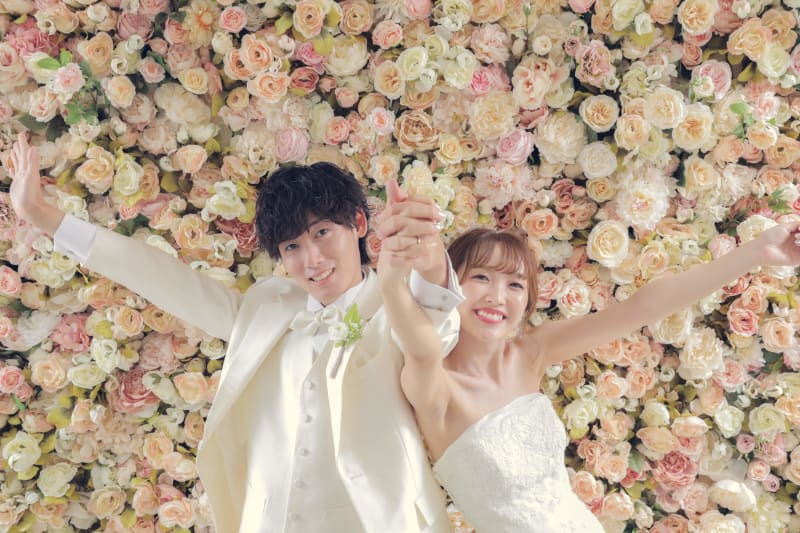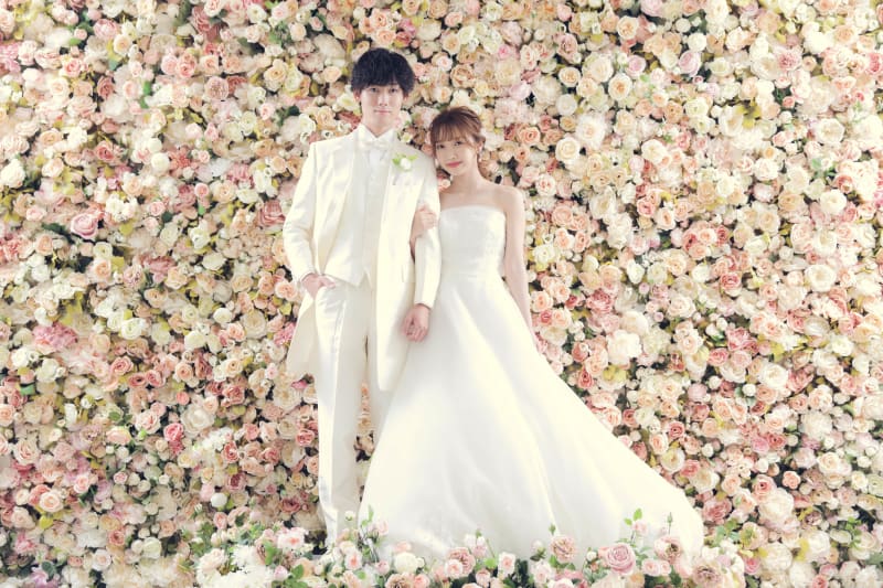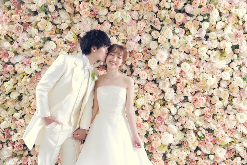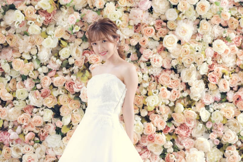 大宮店の洋装ハウススタジオはシンプルな背景や壁一面のお花の背景を用意しており