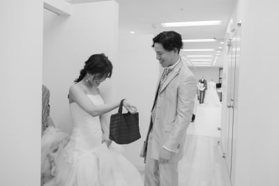 まずはお着替え後、初めてお互いの衣装を着た姿を見る瞬間を。