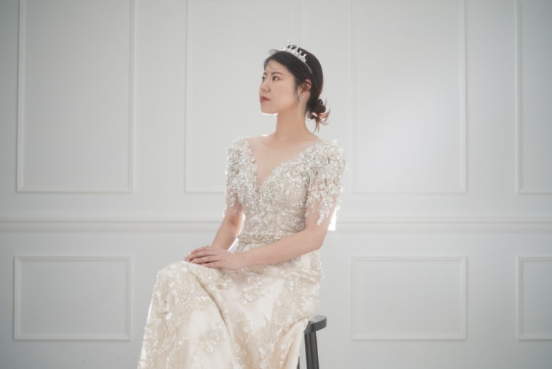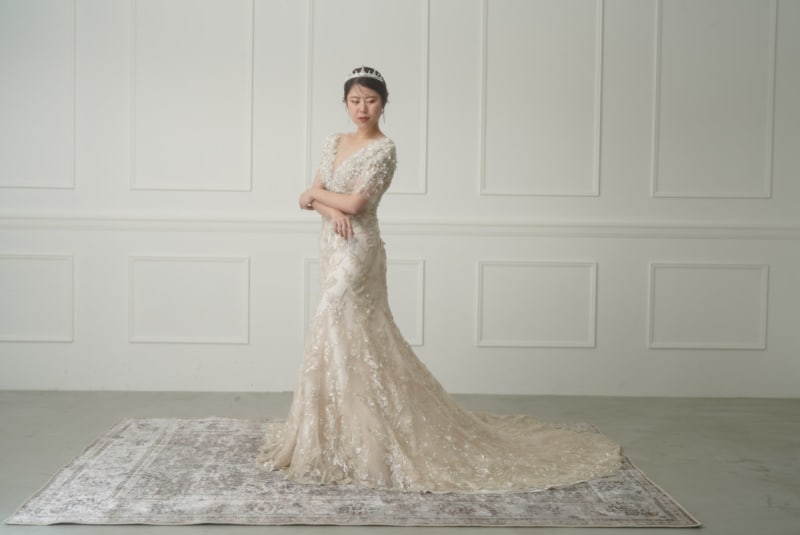 衣装は韓国の最新トレンドをリードするAurumのドレスです。