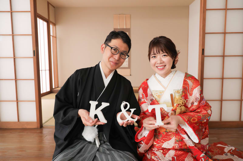まずはお二人のイニシャル小物をお持ちくださいました! 持ってもよし、置いてもよしですね◎