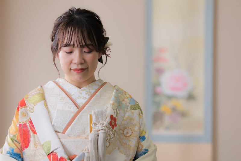 白ベースの色打掛になる為、お顔周りも明るく柔らかい印象になります!