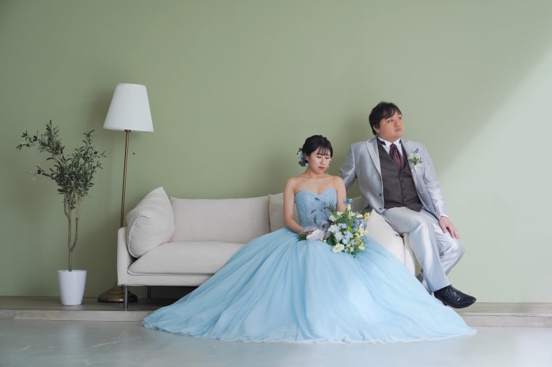 ご結婚式でウェディングドレスをお召しになる方も多いかと思いますが、ぜひ少しカジュアルなウェディングドレスとカラードレスでの撮影はいかがでしょうか?👗