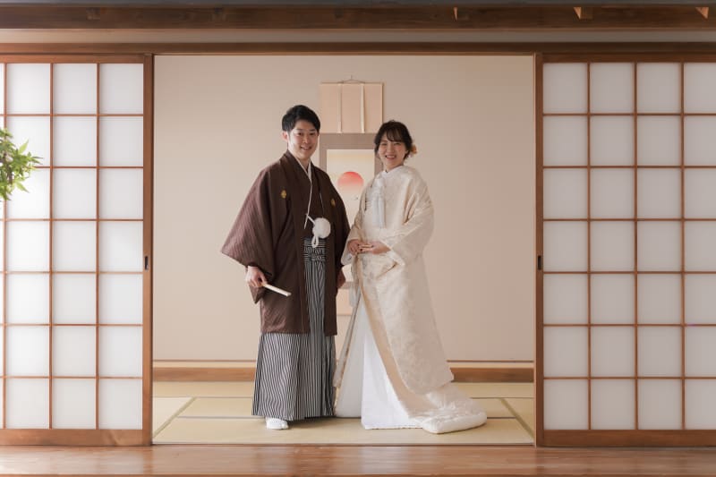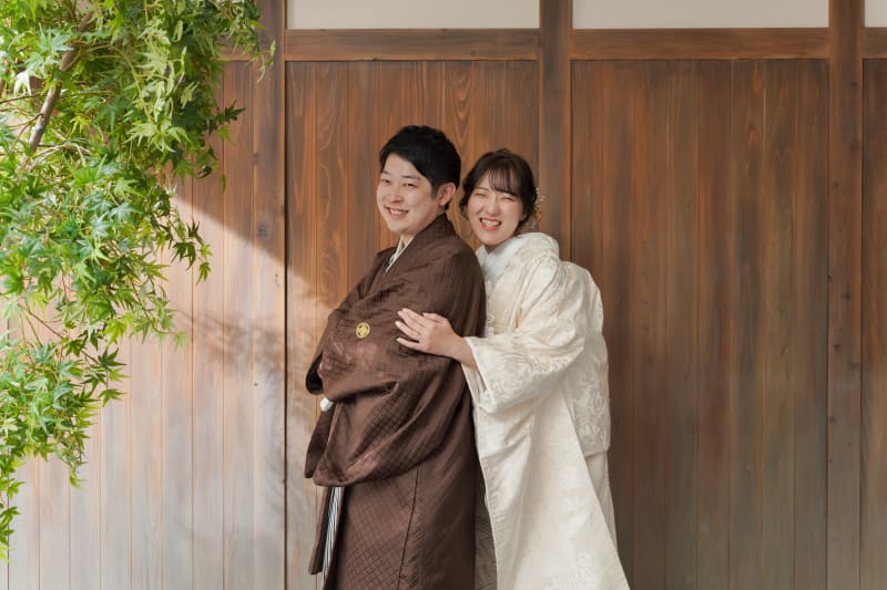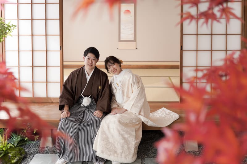 お茶室の縁側にお二人で座って。 お二人だけの時間を