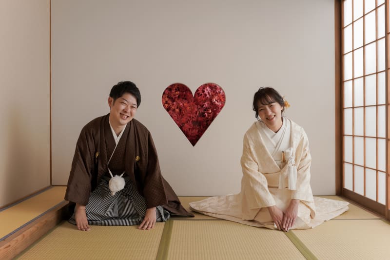 和装といえばの正座のカットです!ハートの猪目窓で