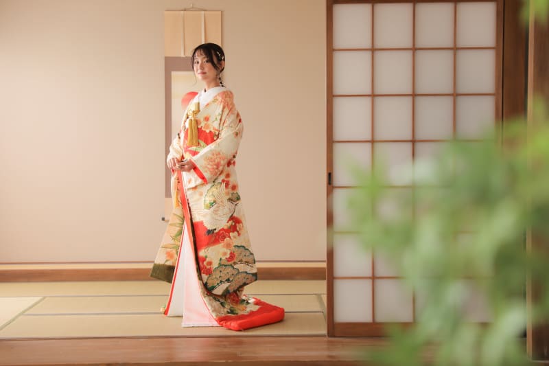 和装の伝統的な立ち姿です。 お着物をキレイに整えて撮影させていただきます。