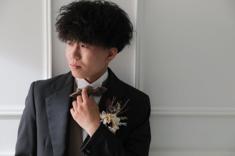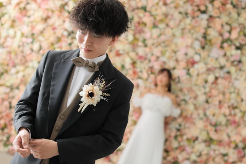 新婦さんは光側に体を向けてより輝かしく。新郎さんは身だしなみを整えているイメージでお撮りしております◎