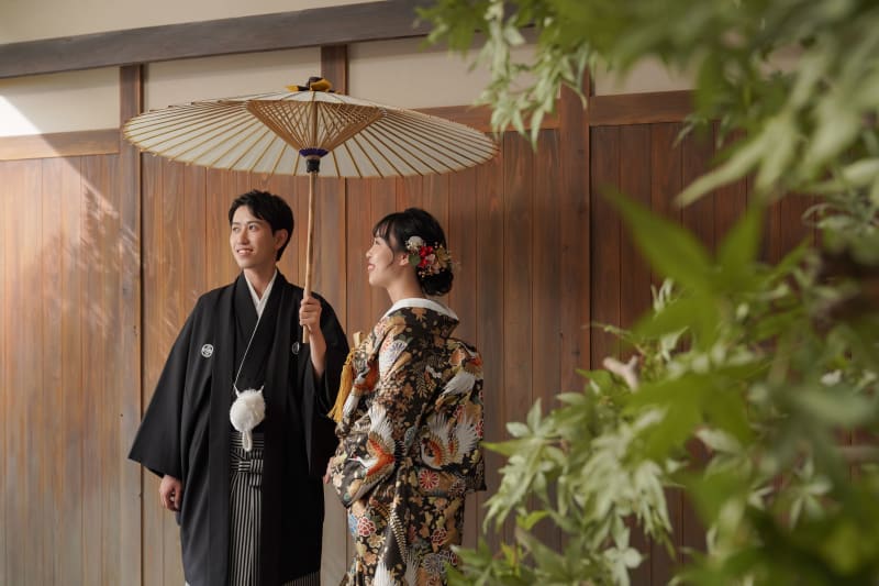 和傘を使っての一枚。和装といえば和傘ですよね。お似合いです!