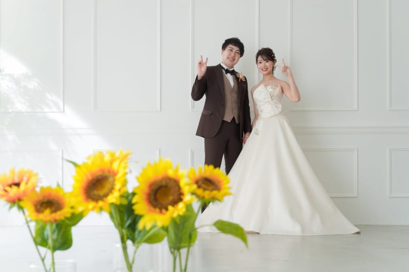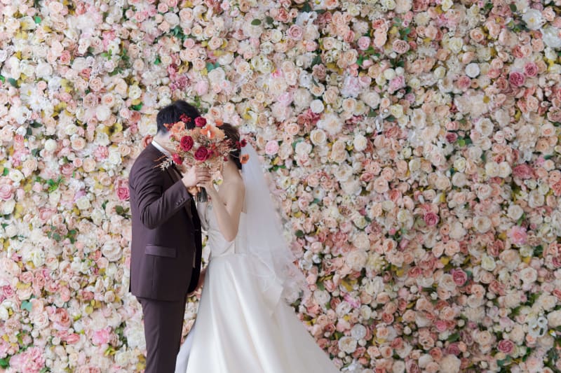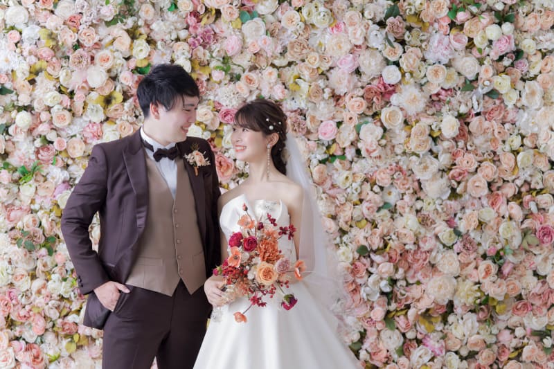 お花の背景は可愛らしい雰囲気で!お二人の距離感も近くで撮影してみました。