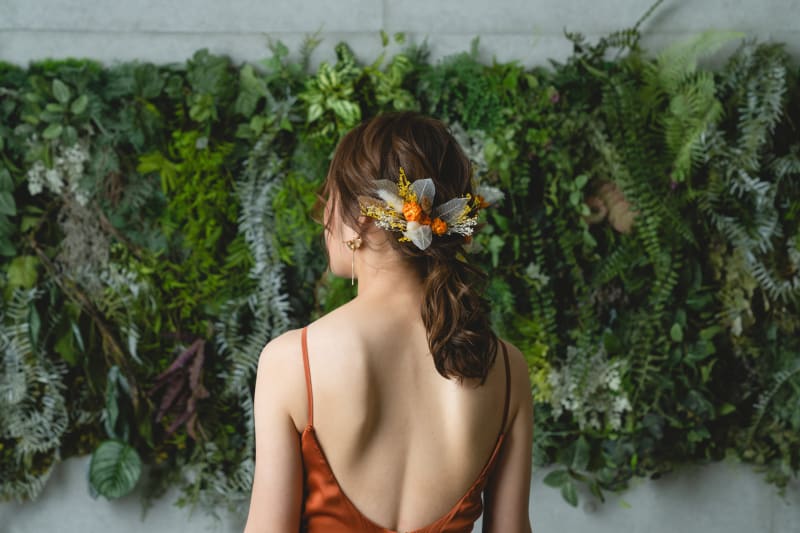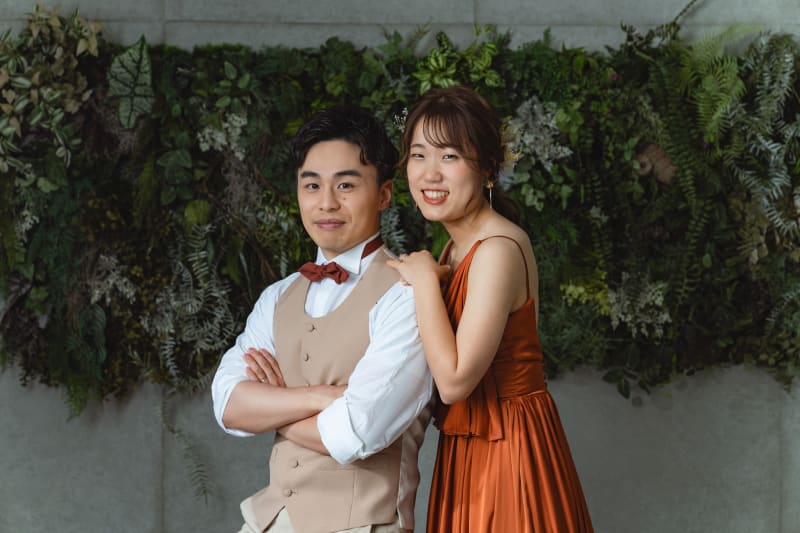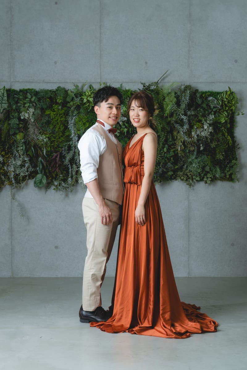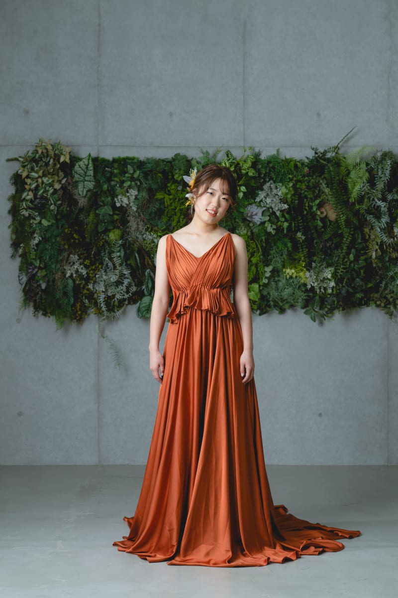 白ドレスからテラコッタカラーのドレスにチェンジ!