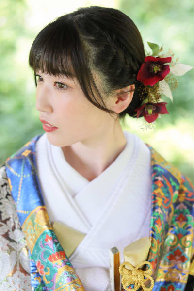 室外での撮影はお着物の裾をたくし上げての撮影でしたが、