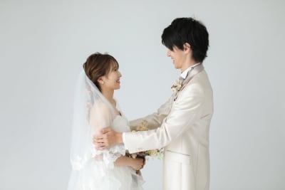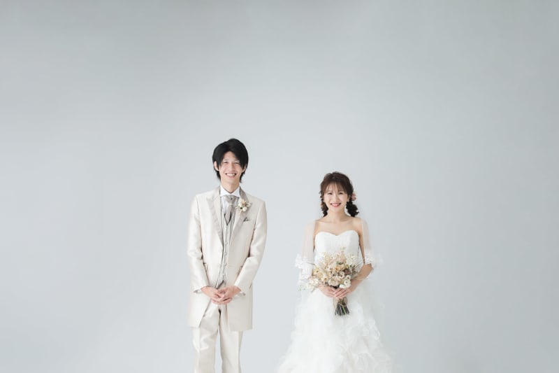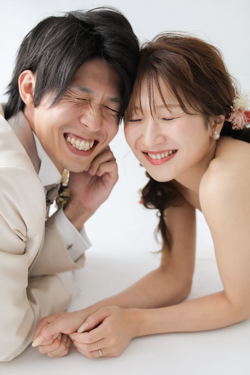 背景がシンプルですので、お二人の表情やお衣装が際立ちますね^^