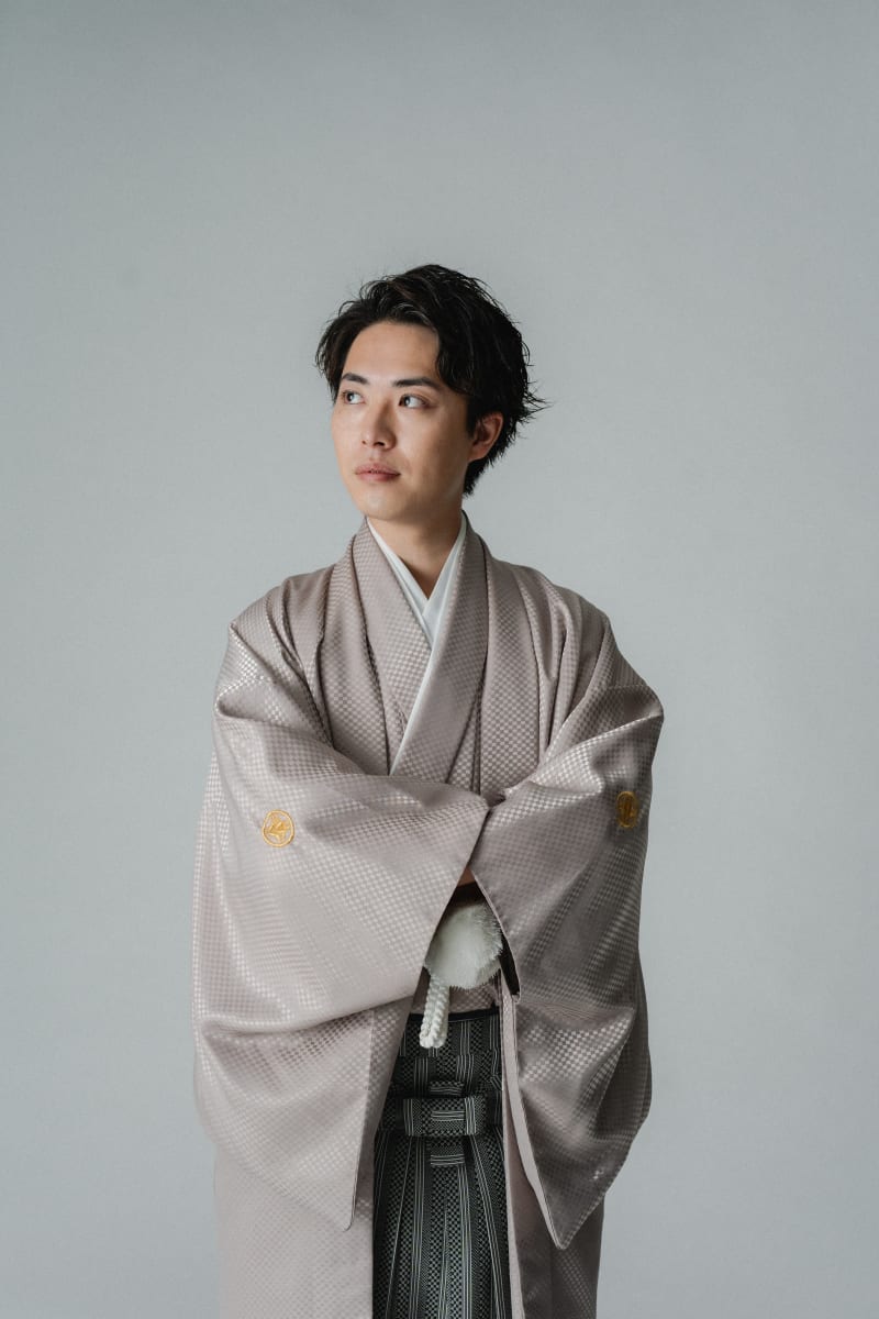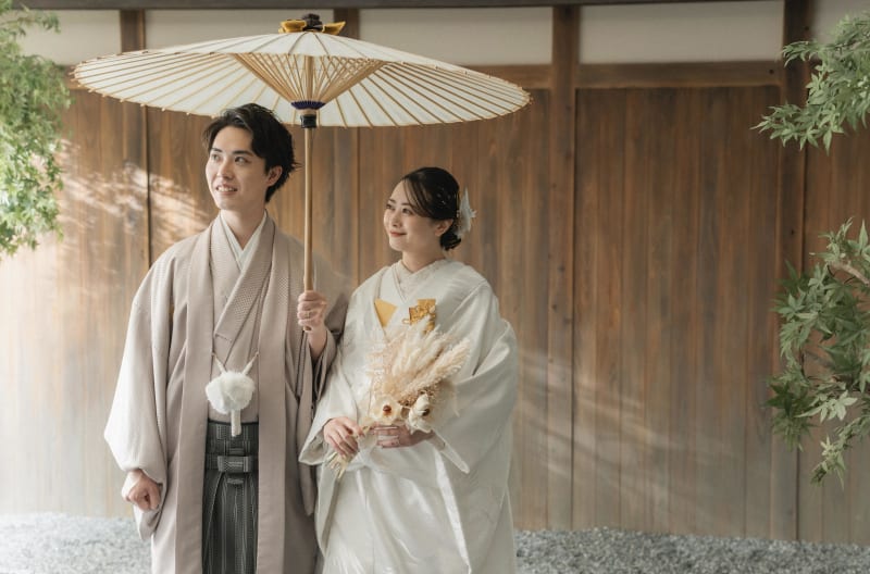 木漏れ日のように見える光の演出で、まるで外で撮影したかのようですよね。和傘を使っての一枚。和装といえば和傘ですよね。お似合いです!