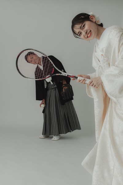 シンプルなスタジオのなかで、お客様がお持ち込みいただいたお小物を使って撮影したり、お客様のイメージに合わせて雰囲気を変えることができます。