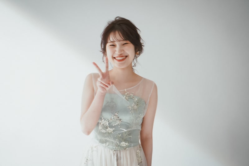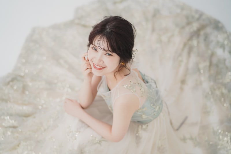 さりげないカラーの取り入れ方がとってもおしゃれなカラードレスで、